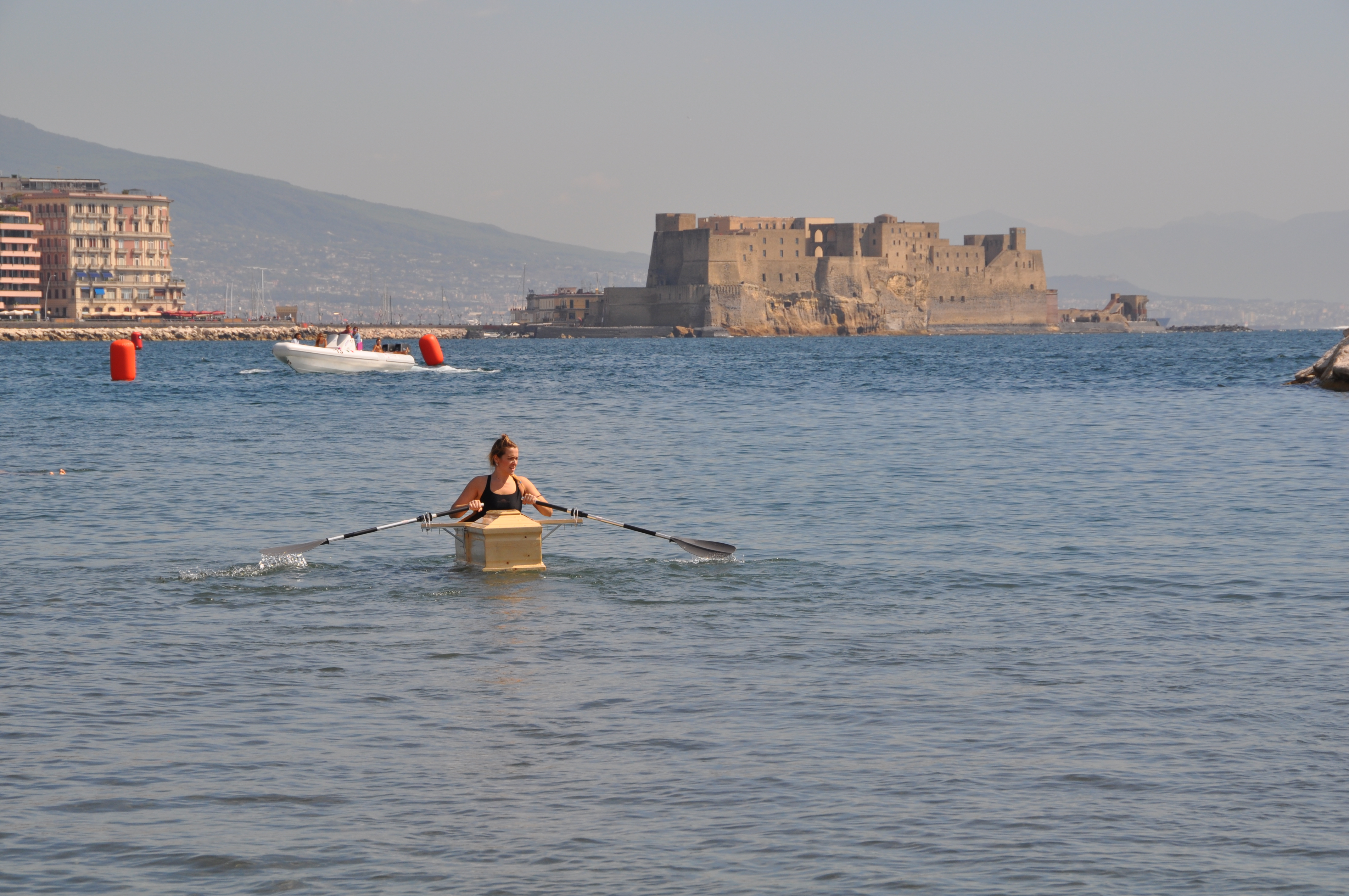 Ricchi rimandi simbologici in cui l’approdo ha (e assume) un ruolo autorevole: quel Castel dell’Ovo che, secondo evoluzioni leggendarie, ospitò (ospita?) prima l’uovo donato da Virgilio mago a protezione (o rovina) della città, poi le stesse ossa del poeta-mago latino accolto dagli autoctoni a tal punto da diventare protettore di questa terra. Enrique Vargas ce ne restituisce un’immagine quanto mai densa: “Abbiamo capito quindi che nella fragilità assoluta di un uovo sta tutta la sicurezza e la forza di una città. Nella fragilità si trova sempre la forza. Questa è Napoli, ai nostri occhi”. E come in un racconto epico, il viaggio sulla bar(c)a a remi diventa atto propiziatorio per la città e Isotta eroina per se stessa.